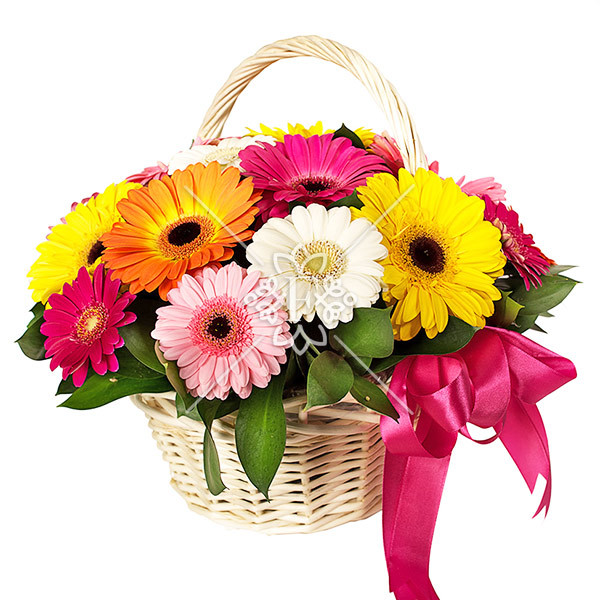 Привлекает своей яркостью и очаровывает с одного взгляда композиция в цветочной корзине «Радужный сон». Чудесные цветные лепестки выглядят мило и очень привлекательно, композиция проста и гармонична!
